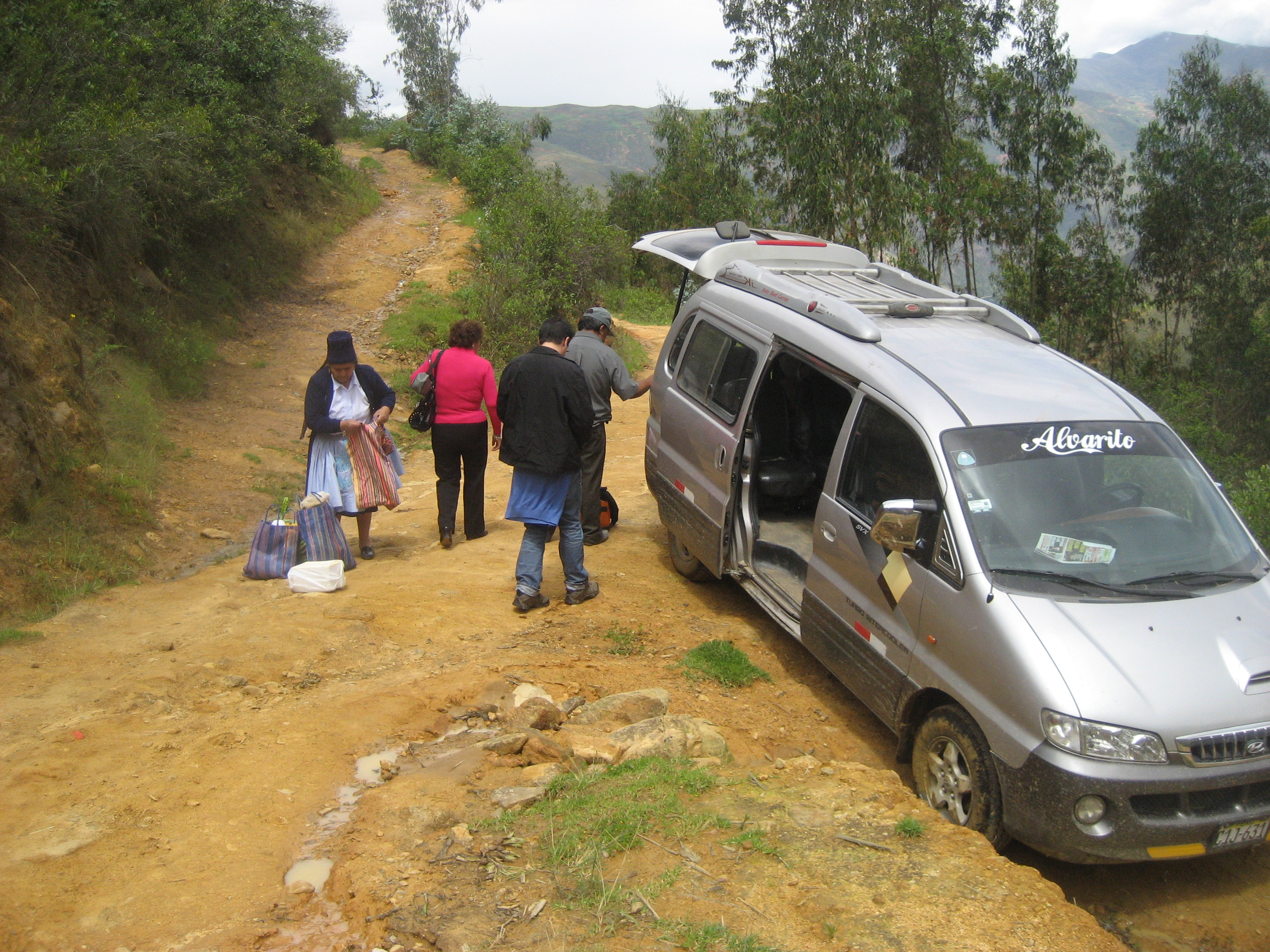 After a long and very uncomfortable night, we finally reached Huanuco at dawn, and were picked up by Magna’s nephew who was going to drive us for another three hours, up the dirt paths which leads to the village. Now for better or worse, the minute I get into any moving vehicle I tend to pass out – a trait that ‘C’ finds rather irritating as it means I make an absolutely rubbish co-pilot! So, true to form I was out cold for the majority of the journey up the mountain – until ‘C’ decides to wake me up, as he feels as though I am missing all that beautiful scenery. Now, I do agree the scenery was breath taking – but did I really need to witness our old minivan attempting to drive up dirt tracks that should only be undertaken by an Off- Roading SUV? The road was as broad as the minivan itself and the sheer drop to the valley was terrifying.