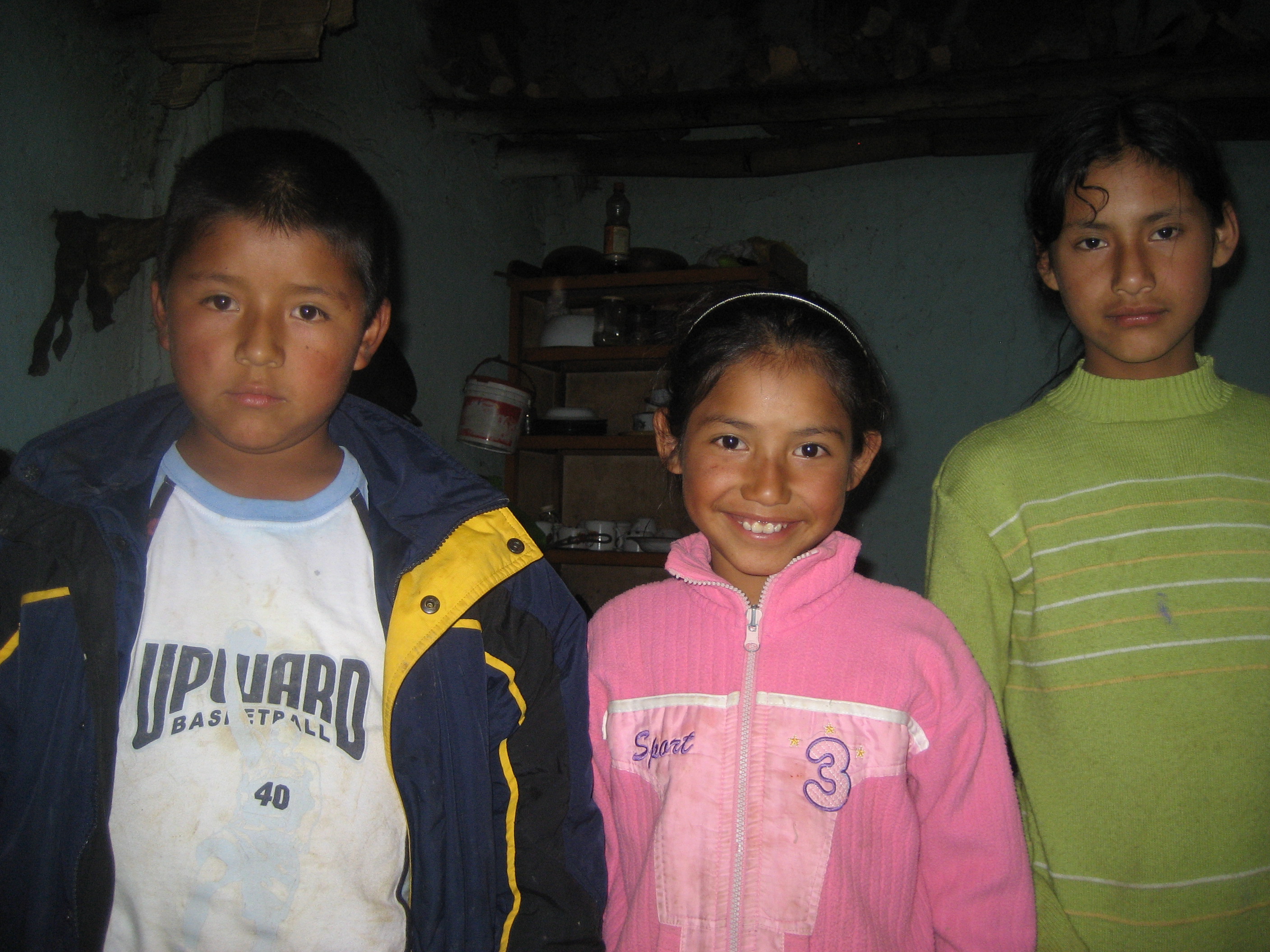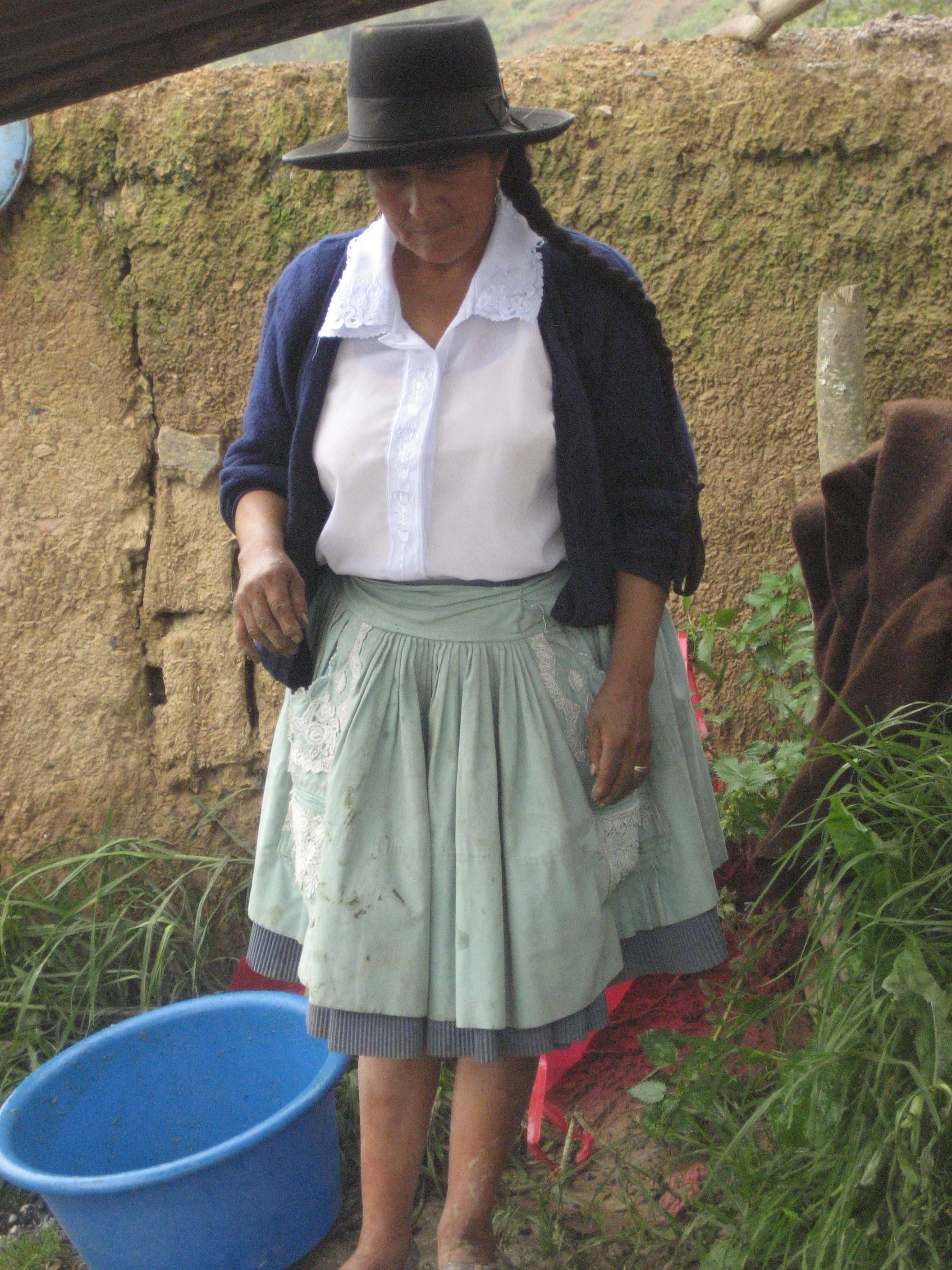 Finally we arrived at the village – and made our way to where we were staying, a little blue house high on the hill side. We were greeted enthusiasticaly by Magna’s family and sister, who I immediately warmed to. Unlike Magna she was dressed in traditional Andean clothes: bola hat, two long braids down her back, white blouse and the full bodied skirt that is so synonymous with the pictures we have all seen in National Geographic!  ‘C’ was welcomed as a long lost relative, with a lot of excitement and love, and I got my fair share of hugs and kisses too. Magna, who was impressed with my appetite and my apparent steel stomach (I was one of the few people who did not vomit on our trip up from Lima) introduced me to everyone we met with the phrase: Esta Alex, ella comer todo! (this is Alex, she eats everything.)