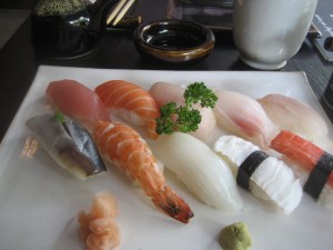 The ambiance of the restaurant was light and airy and I absolutely love the fact that there is not one television screen in sight (my pet peeve here in Mexico). Although one thing that struck both ‘C’ and myself as odd was the sushi counter – all the fresh fish that was on display was tightly wrapped in cling film which does not look especially appetizing. But this was such a small detail and the fish was very fresh so I really should not complain, I guess it was more of an observation.