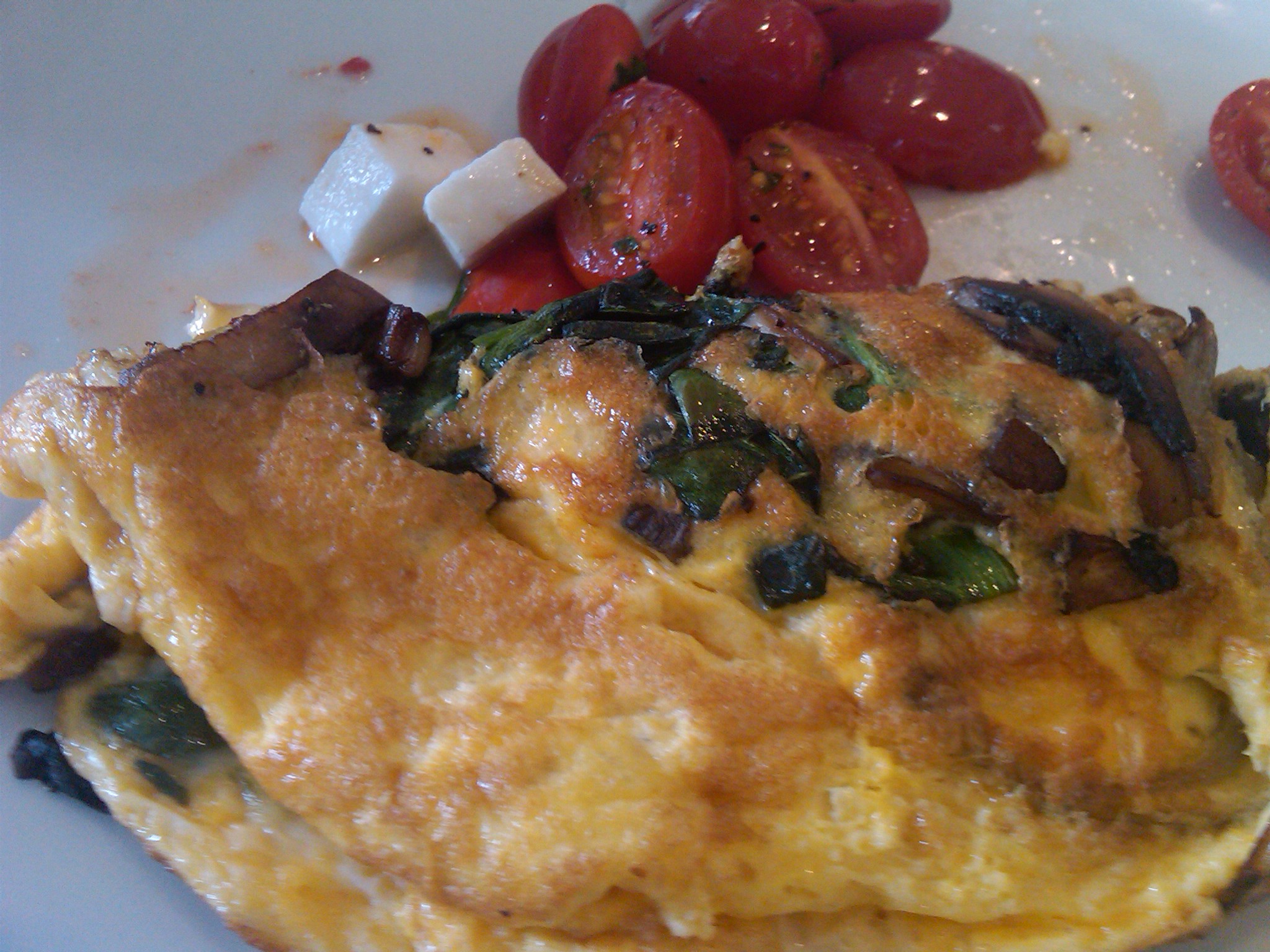 While I was waiting for the omelette the chef comes to me and give me a little taster of salmon and cream cheese roll. I am not entirely sure what he said to me, but as usual I just smile and nod and that seemed to do the trick ;) Then the omelette arrives, really well made and perfectly seasoned, with a lovely side salad of warm cherry tomatoes and feta cheese.