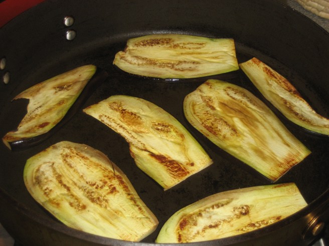 This dish itself is pretty straight forward, although, I would say the most time consuming part is slicing the aubergine, letting it sit for an hour and then frying the slices until they get golden brown. As I had 10 girls come for dinner I doubled the quantity and had over 2kg of aubergines to go through…