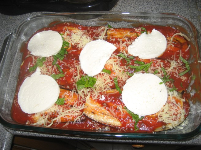 I also took this opportunity of ‘C’ not being around to make Melanzane alla parmigiana – which basically is an aubergine lasagna. You see, ‘C’ is ‘apparently’ allergic to aubergine, which is why I never cook with it when he is around. I say apparently, as I am quite convinced he isn’t but rather he just doesn’t like it, and by saying he is allergic he knows I won’t bully him into eating it :) I can be quite pig headed at times…