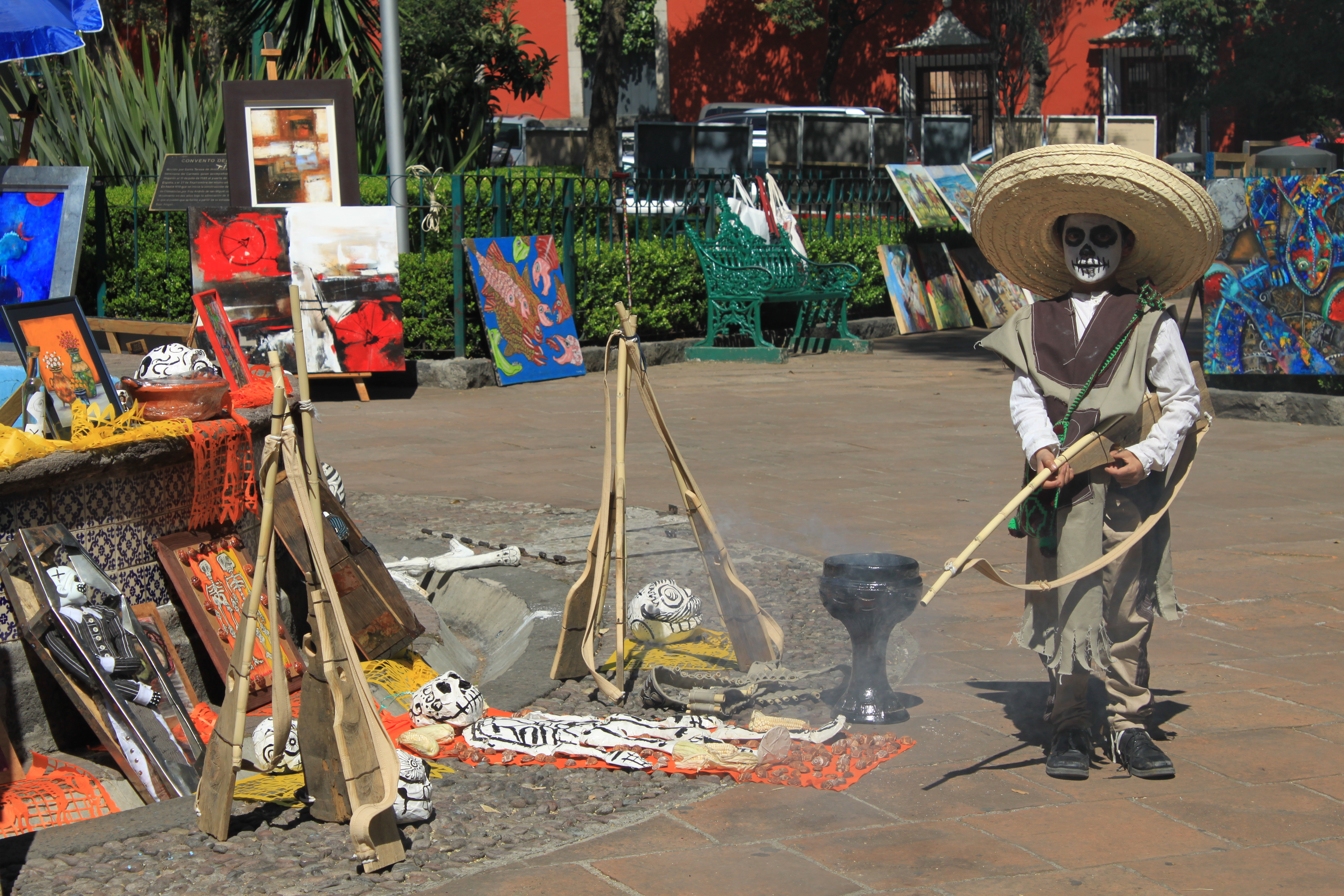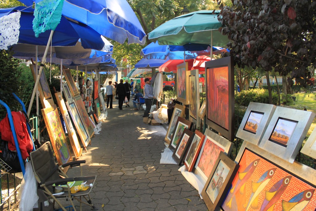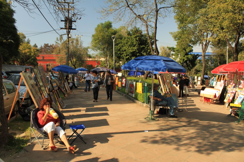 Every Saturday there is an art market held in the plazas of San Angel. Artists of every age, style, technique and talent display their artwork here. Even if you do not want or need to buy anything, it is so lovely just to walk around and look at all the art displayed in front of you and the creations that have been made. There are also quite a few shops surrounding the plaza selling everything from traditional artefacts to modern furniture – in fact over the last year we have been living in Mexico City and visiting San Angel – we have nearly always left with something that we have fallen in love with on our stroll around the plaza. Last Saturday we came back with two oil paintings!