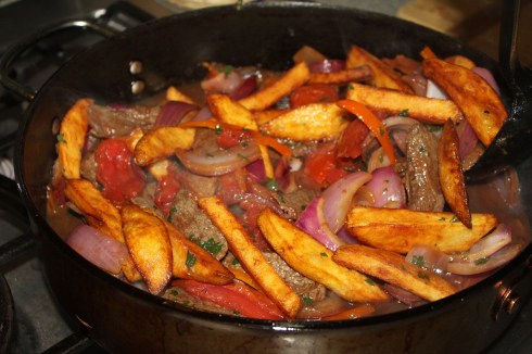 However that is all about to change and what better comeback recipe than Lomo Saltado. Lomo Saltado is a classic Peruvian dish, which for me is the perfect example of Peruvian cuisine and its diversity.  An absolute testament  to Peru’s Asian influence which so surprised me when I first got to know C. Essentially it’s a stir fry with strips of beef, onion, tomato, soy, vinegar and potatoes giving this dish a wonderful aromatic flavour yet a punchy kick with the aji (Peruvian chili) and vinegar.