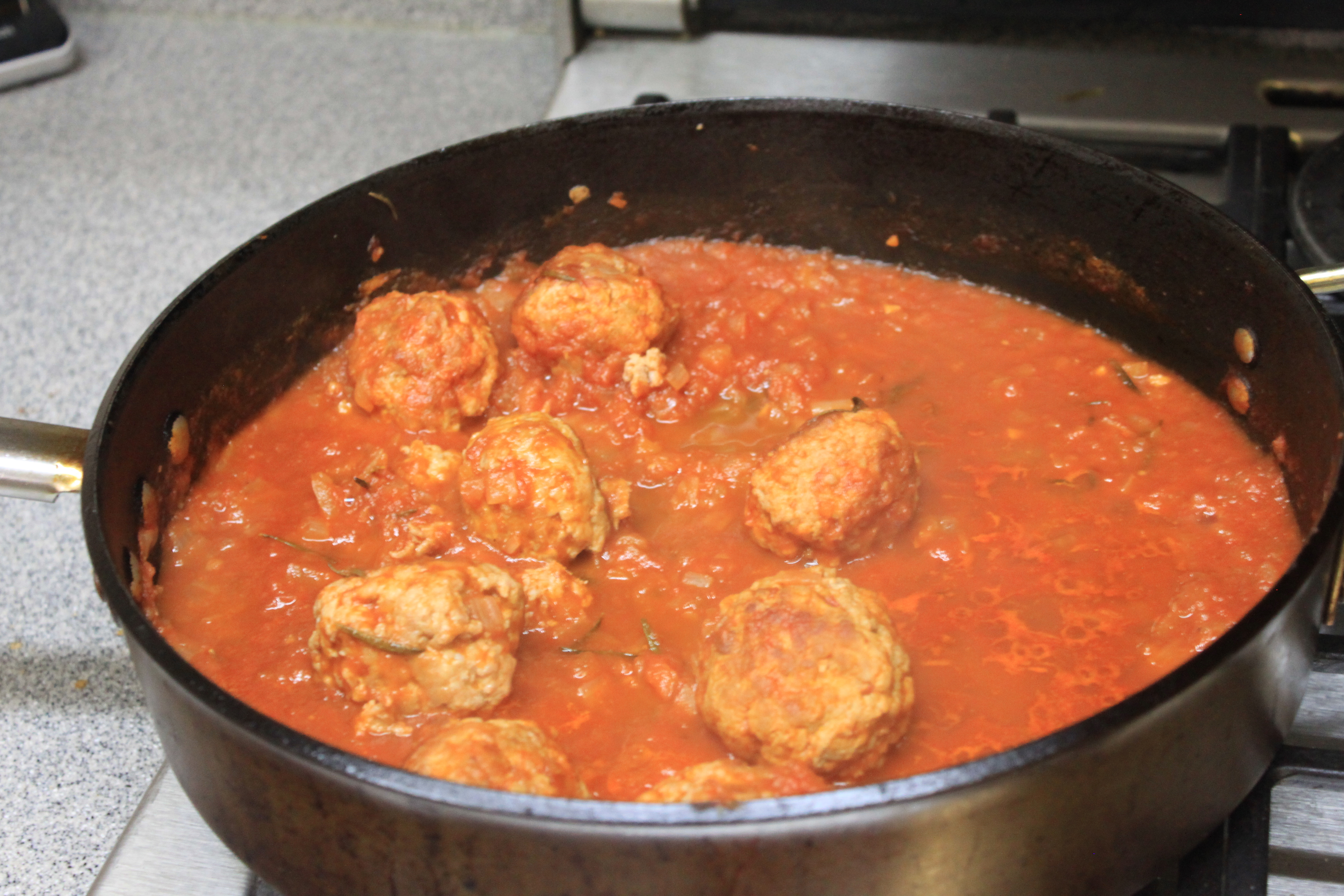 Simmer over medium-low heat covered with lid slightly ajar and stirring occasionally, until meatballs are very tender, about 2 ½ hours. (I simmered it for only about 1 ½ and I have to admit my meatballs were not very tender, they felt quite dry and hard)