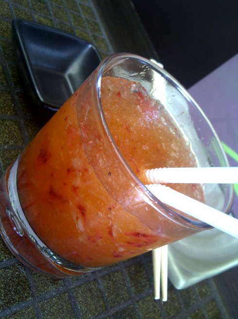 The decor has a modern Asian feel, with clean structures, dark wood and bamboo furnishings. They also have a lovely outdoor area which is where C and I sat this afternoon, making for a very pleasant couple of hours. As soon as you sit down, you are given their cocktail menu which upon immediate inspection you realise that these are no ordinary beverages, and if like me you are not so keen on cocktails – I guarantee there will be something on this list that will perk your interest.  How can you choose between their Caipi Osaka which is vodka, passion fruit juice, macerated strawberries and a touch of lime? Or what about a short drink with tequila, jalapeno and cucumbers? I couldn’t, so I had both – and what an experience.