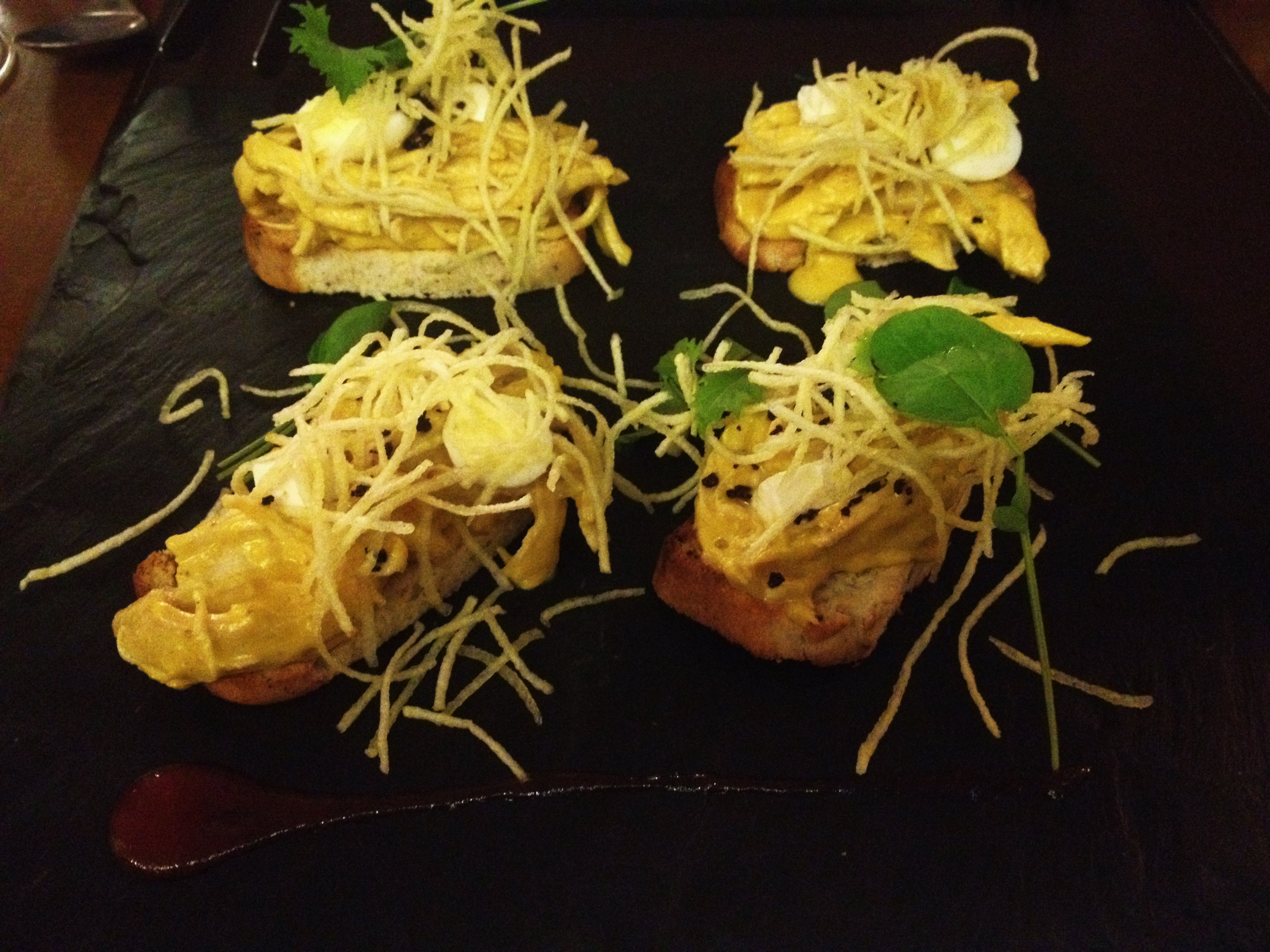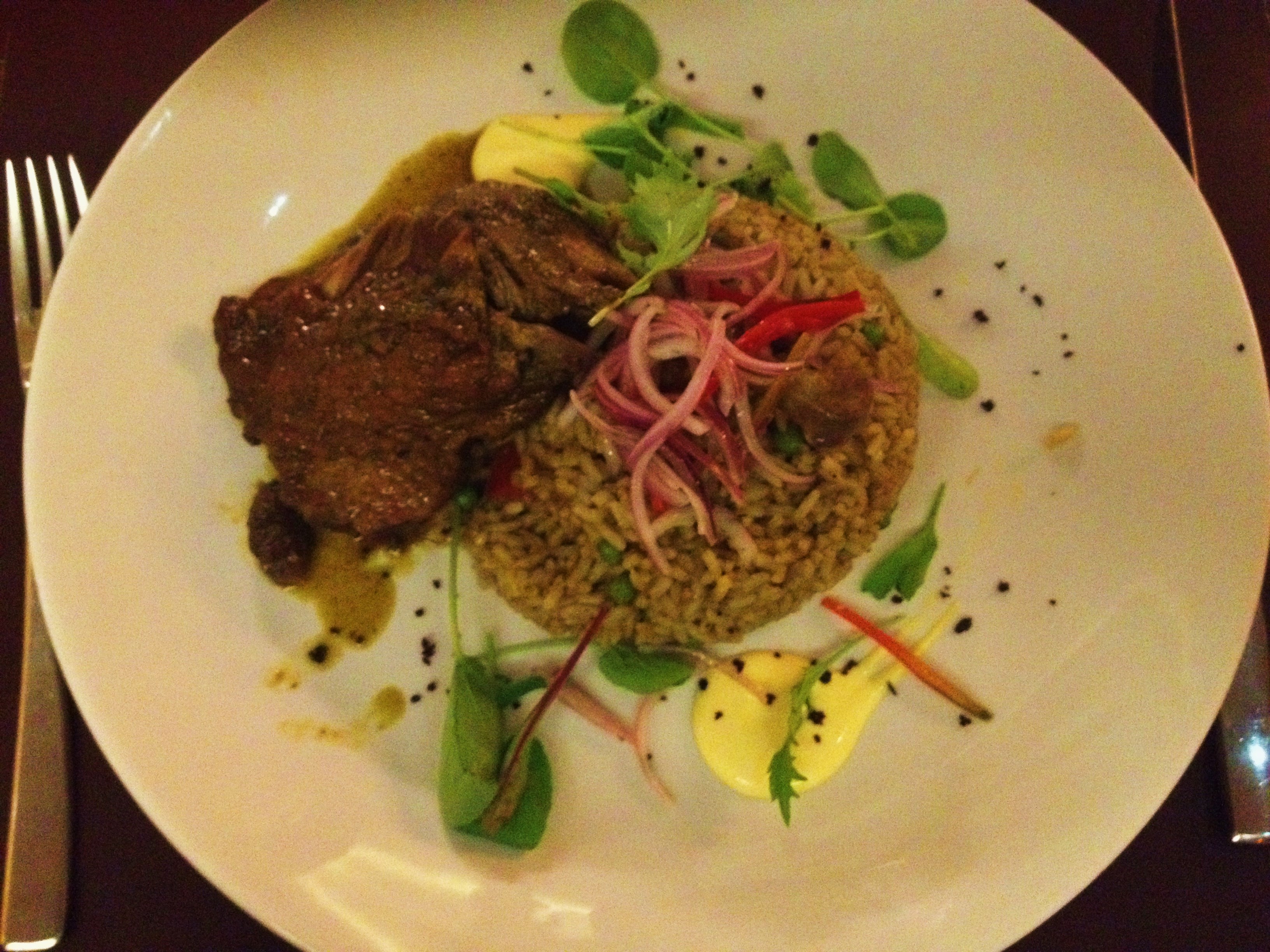 For starters we ordered the Ceviche Criollo and the Aji de Gallina bruschetta which sounded interesting. I loved the ceviche, it had a great coriander kick to it and the fish felt firm and tasted fresh. The Aji de Gallina was tasty as well, but a little bland and the bread could have been toasted a little more for that extra crunchy texture.