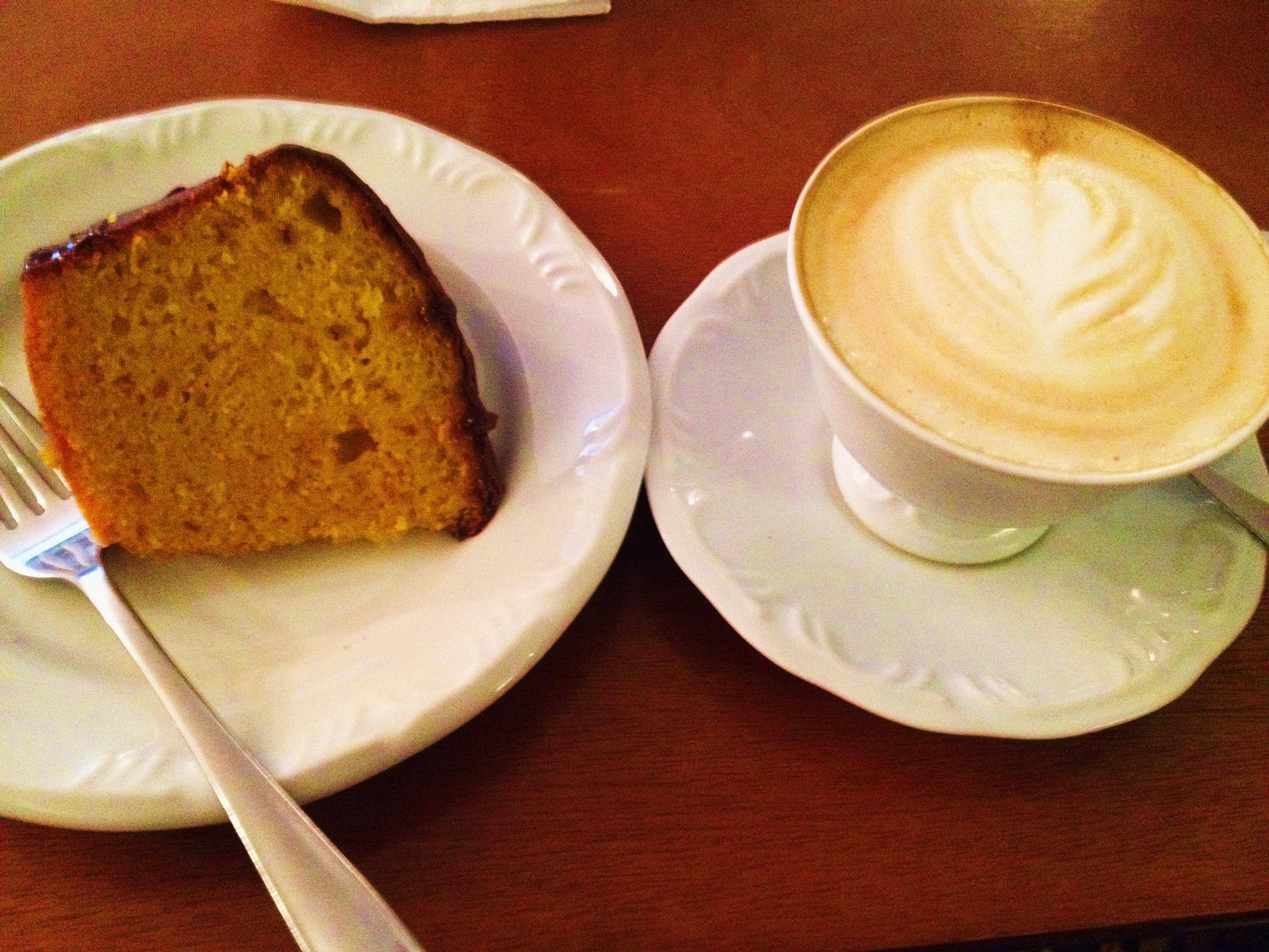Anyway, I digress….I ordered a cafe latte along with a carrot cake and chocolate frosting.