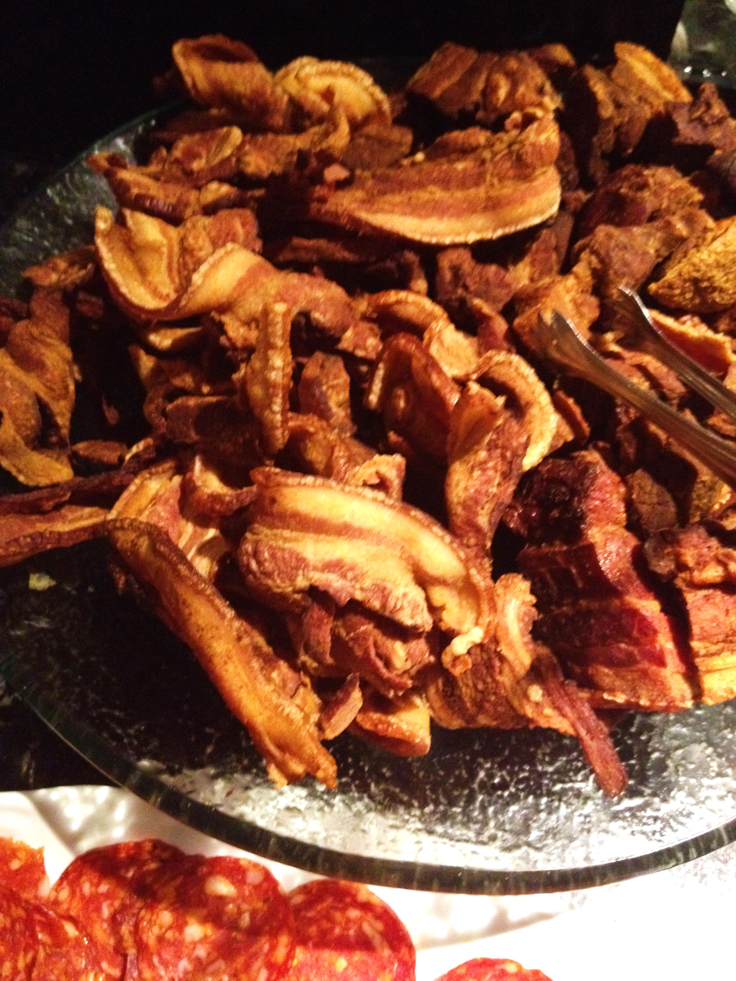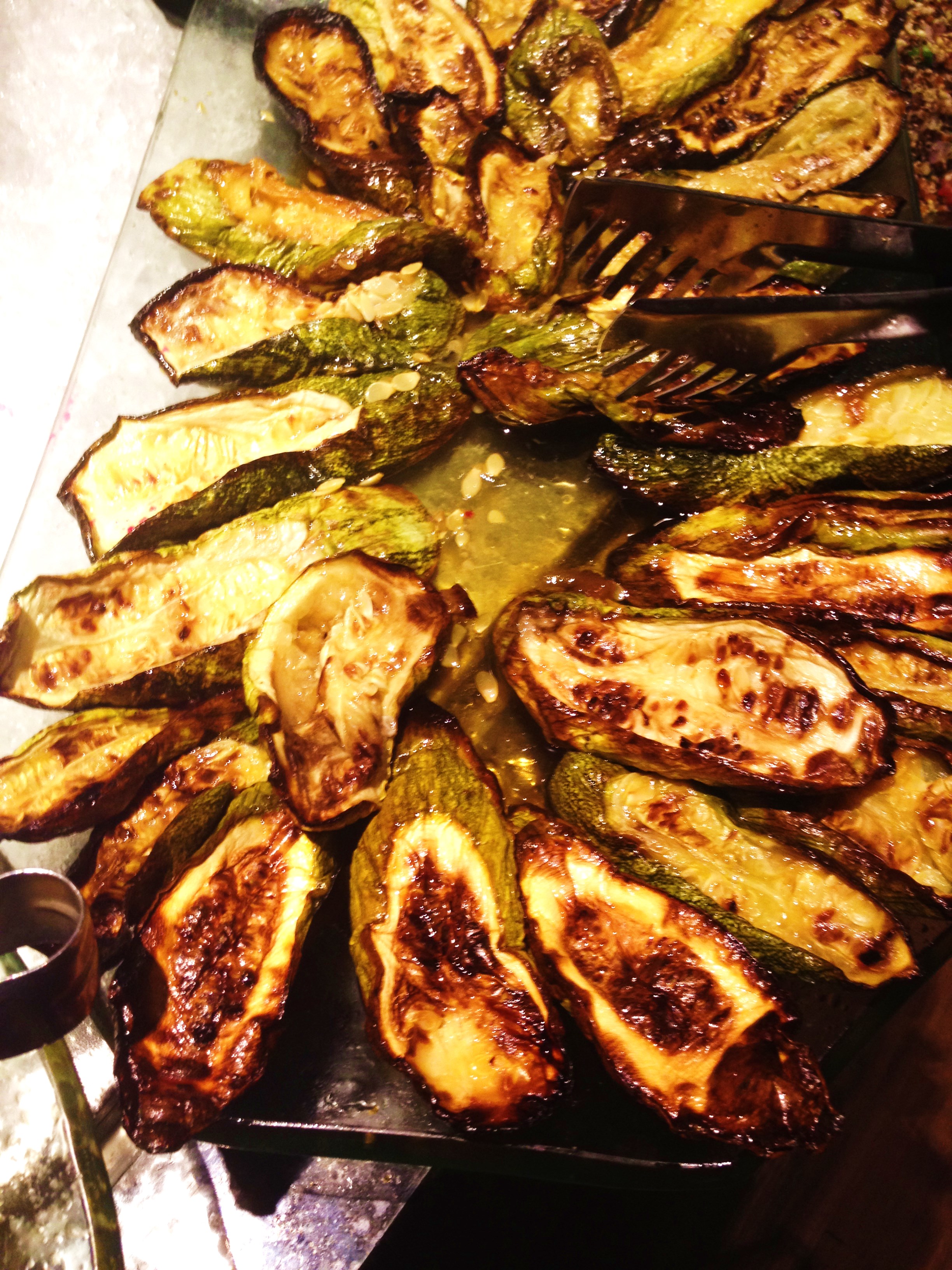At the entrance of the restaurant, we were warmly greeted by an open fire-pit with four large skewers of beef ribs being roasted giving you the sense of the place, and by the friendly Maitre D’ who showed us to our table. We had reservations for 8pm and the restaurant was just beginning to fill up. Once you are seated everything seems to happen quite quickly. Immediately warm pão de queijo is placed on your table and the passadores start streaming by tempting you with what they have to offer. It’s slightly overwhelming as I wanted to try EVERYTHING but where to start?