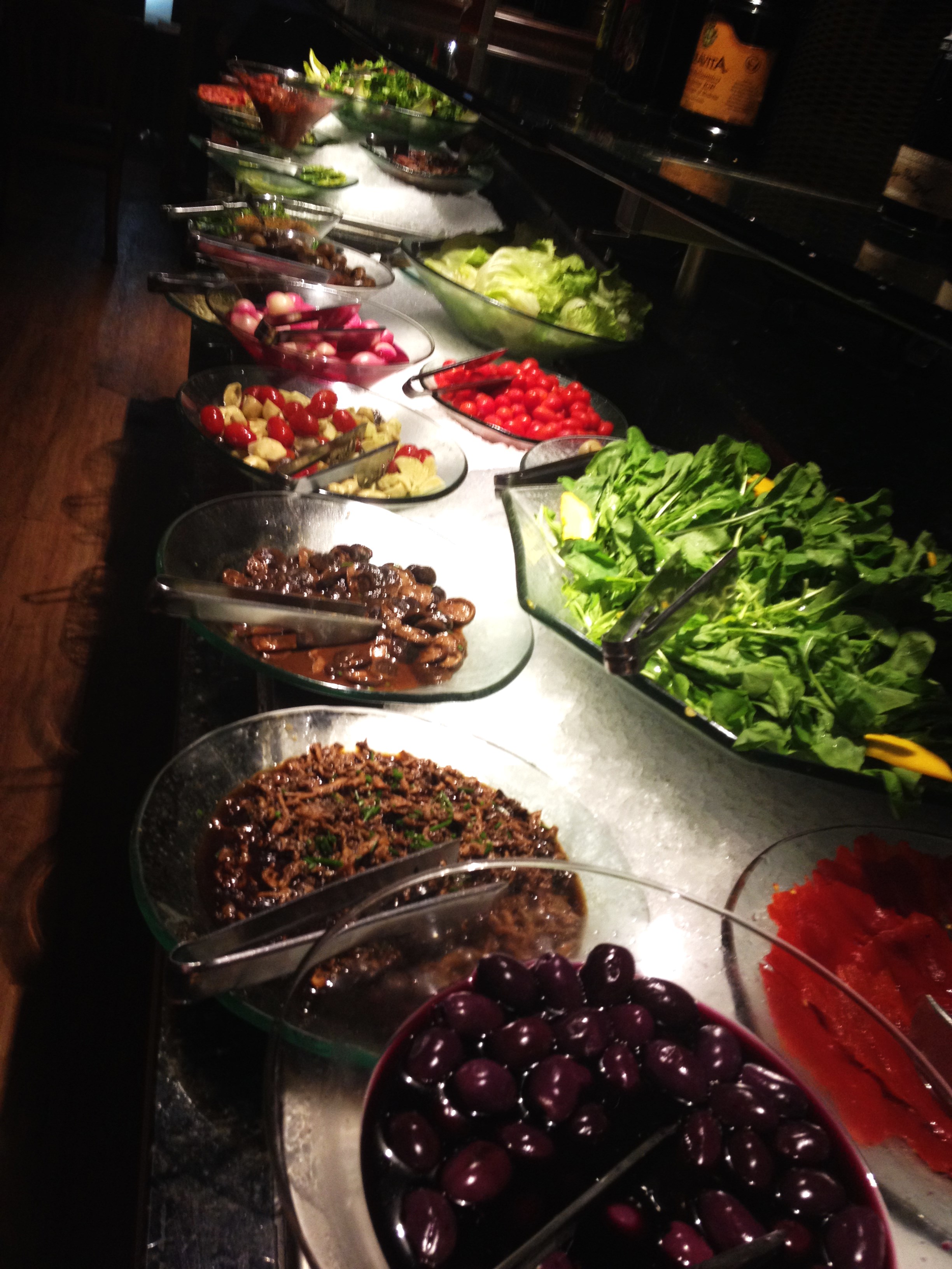 It was time to get organised. First, we went to the salad bar, where they have such a vast array of wonderful and varied looking options, such as cold meats cheeses, olives and vegetables I think I could come back to Fogo de Chão just for the salad!