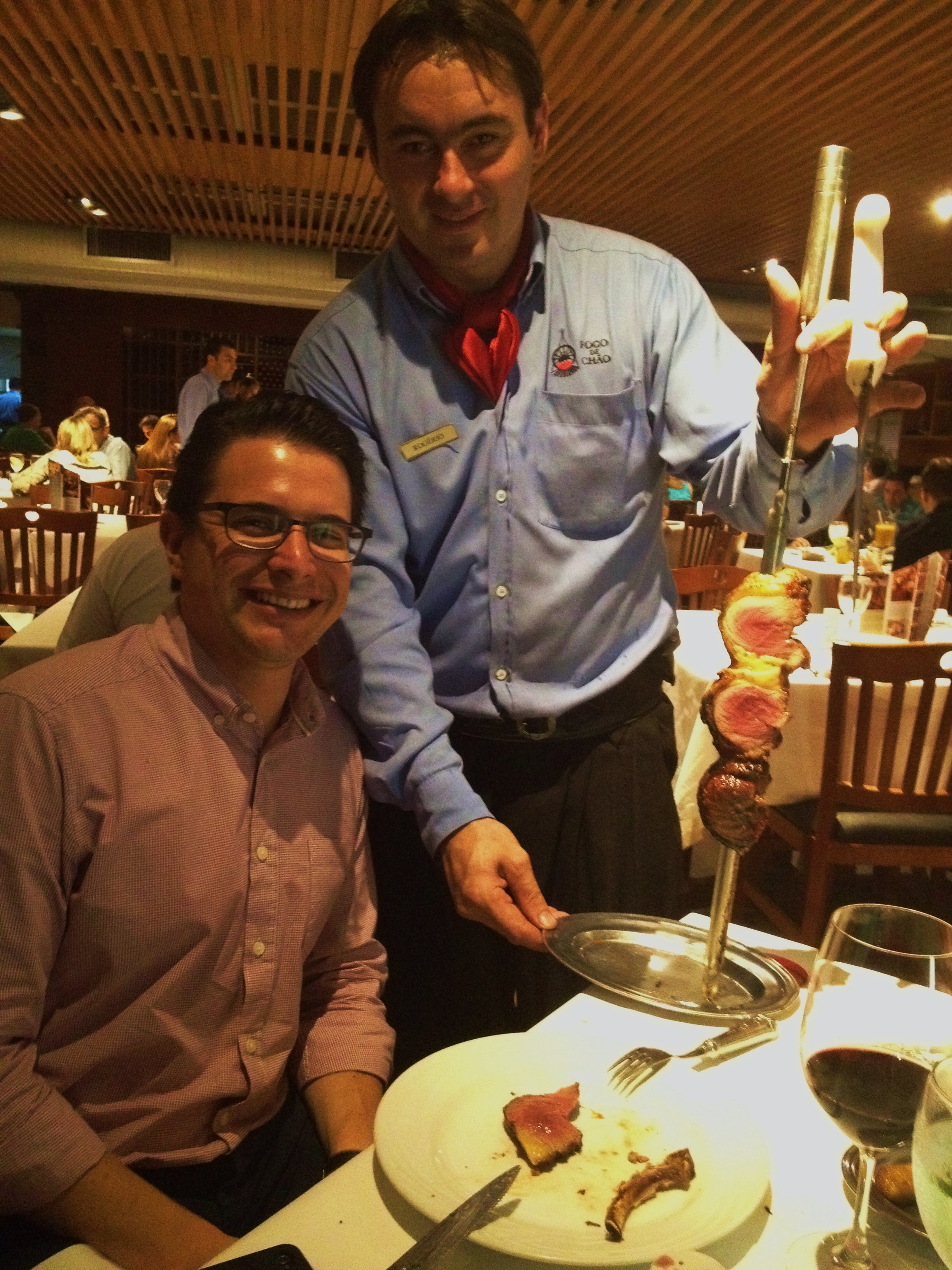 The only aspect of dinner that did not live up to expectation was the chocolate mousse that C and I shared for dessert – it was far too large and heavy to end the meal with, and it was lacking that intense ‘chocolatey’ flavour that I crave, but like C say’s, you don’t come to Fogo de Chão for dessert!