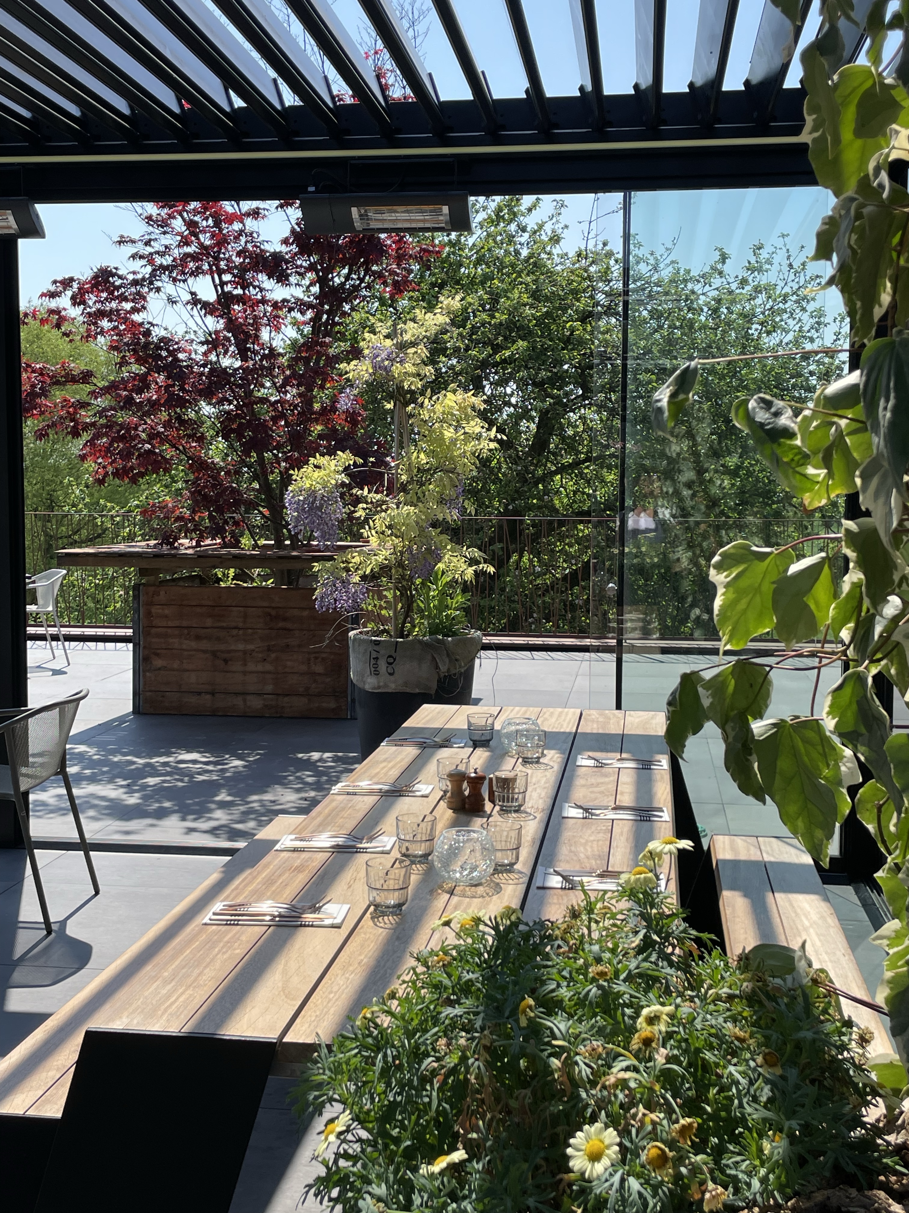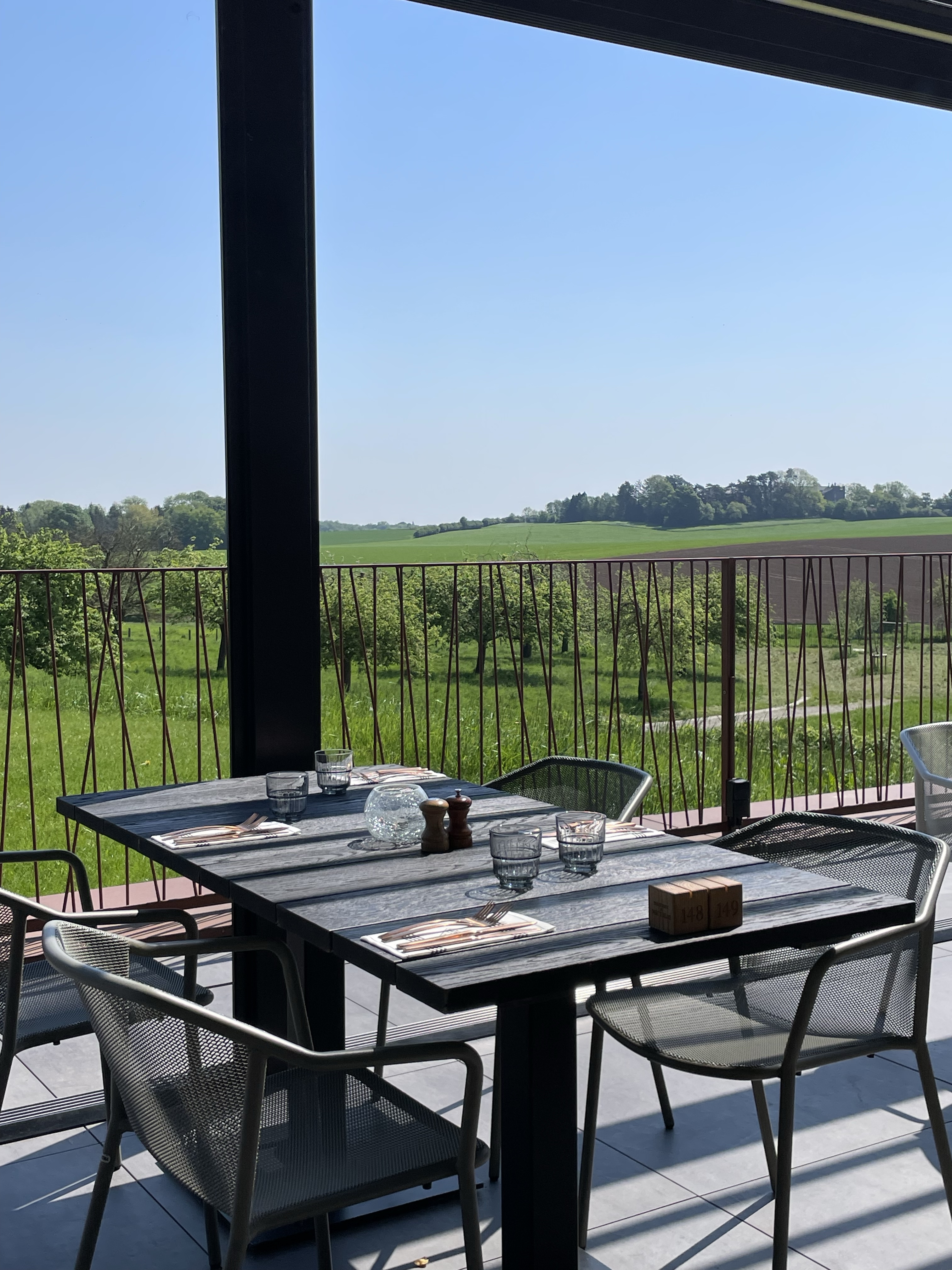 However, the real show stopper for me – at least on those rare sunny Belgian days which it was when we visited – is their 500m2 terrace with panoramic views of the gentle rolling fields of the Belgian countryside.