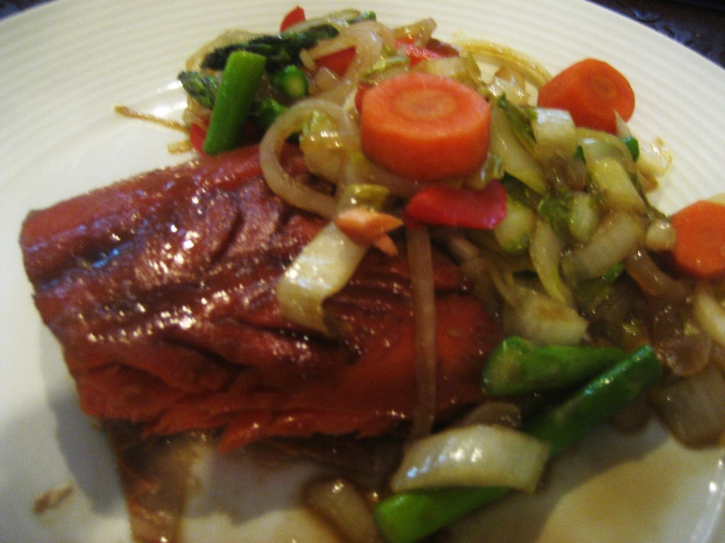 Just a very short and to the point post – Sticky Salmon with Chinese Greens.